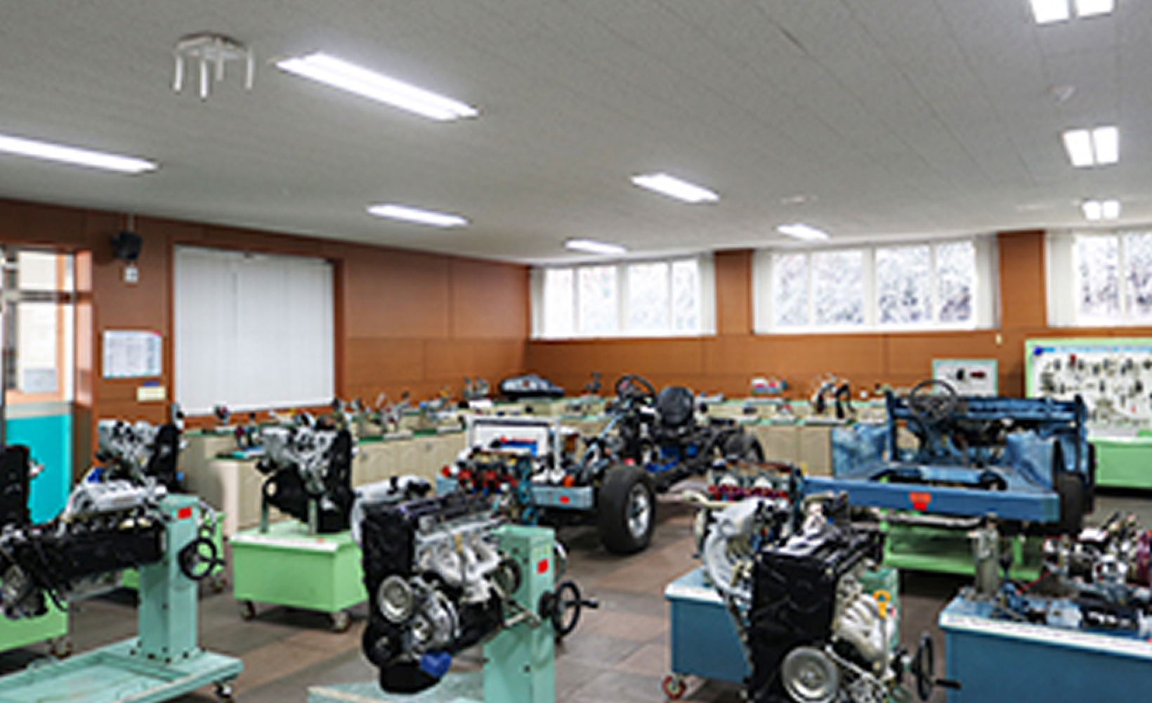 재료실험실은 기계재료의 기계적 성질을 시험하기 위하여 재료의 인장, 압축, 굽힘, 충격강도 시험 및 금속조직시험 등을 행할 수 있도록 금속 현미경, 각종 경도 시험기, 충격시험기, 만능 재료시험기, 각종 열처리 설비를 구비하고 있다.