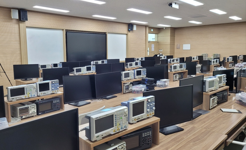 - PC40대 / 모니터 40대 / 디지털멀티메타 / 함수발생기 / 오실로스코프 / 직류전압전류기 / L.C.R-Meter